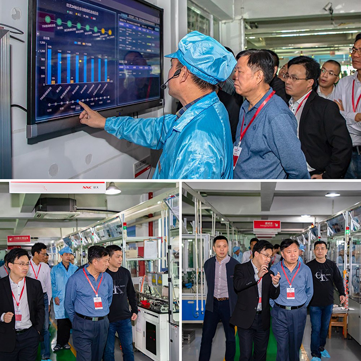 毛主任一行参观了继电器自动化生产车间,听取了生产线上云的情况介绍,通过数据采集终端远程查看了设备、人员、计划、质量等实时状态,毛主任对欣灵的先进设备、生产环境、管理水平以及企业当前发展状况给予了充分的肯定。